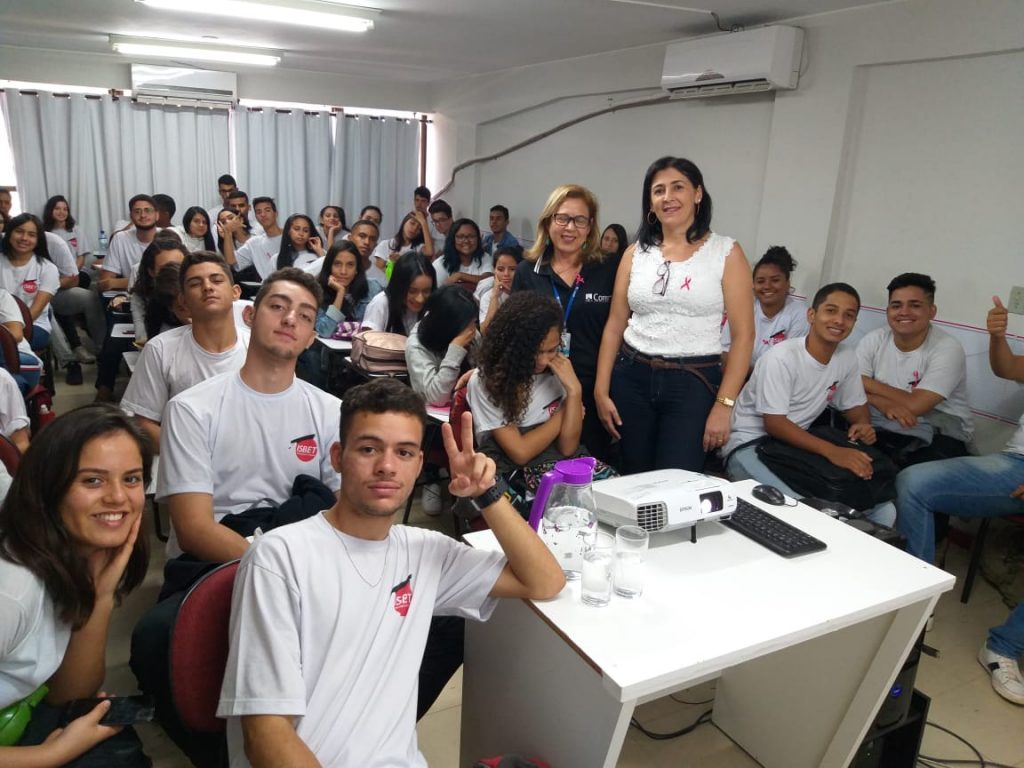 No mês destinado à prevenção do câncer de mama, a educação em saúde não pára! Ontem (24), a Comissão de Saúde da Mulher do Coren-DF, realizou uma palestra com o tema “Outubro Rosa”, para os estudantes do Instituto Brasileiro Pro Educação – Programa Estágio e Jovem Aprendiz (ISBET).