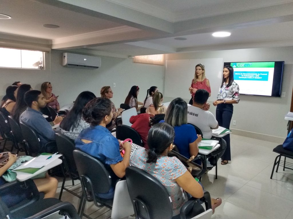 O Conselho Regional de Enfermagem do Distrito Federal (Coren-DF), realizou mais um curso gratuito na área de Enfermagem. A V Oficina de dimensionamento de pessoal, aconteceu ontem (29), no auditório do SindEnfermeiro. Ministrada pela fiscal Sheila Costa e a gerente de fiscalização Daniela Bonacasata, ambas do Coren-DF.