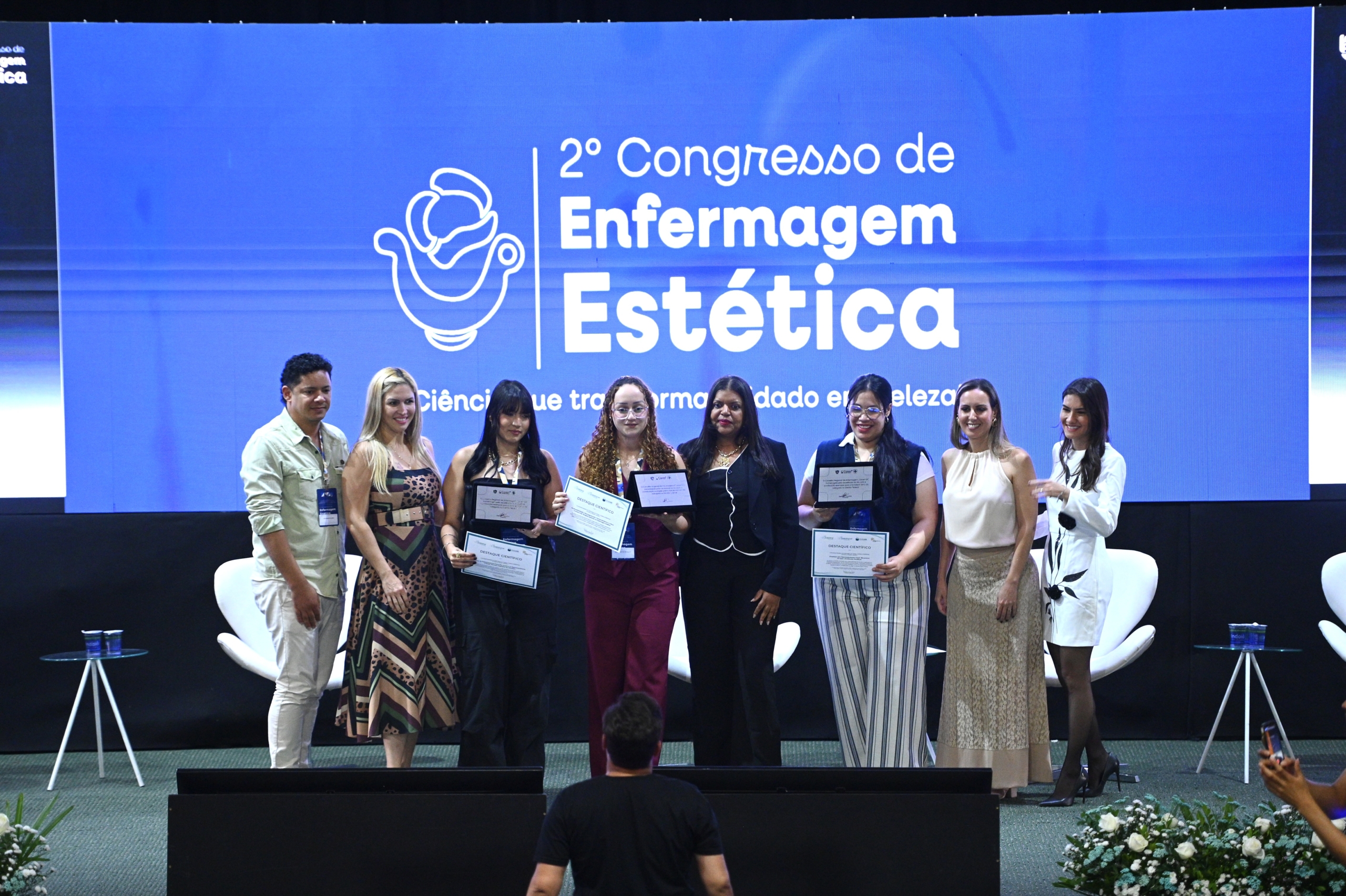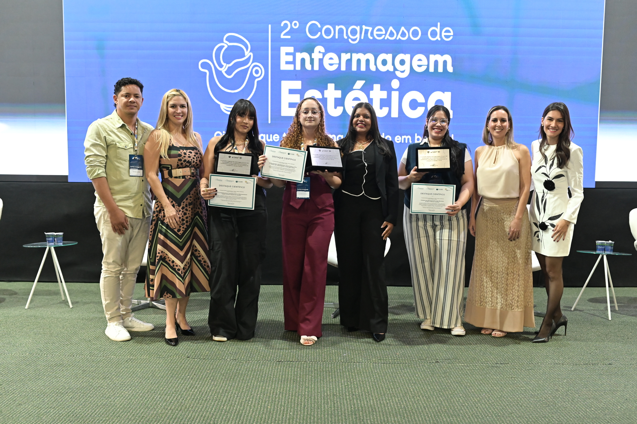 A produção científica da Enfermagem estética também teve destaque especial durante o evento. Foram apresentados os trabalhos selecionados entre dezenas de submissões. Os três melhores estudos receberam premiação e foram reconhecidos pelo rigor técnico e pela contribuição para o avanço da estética na Enfermagem. Confira os ganhadores: