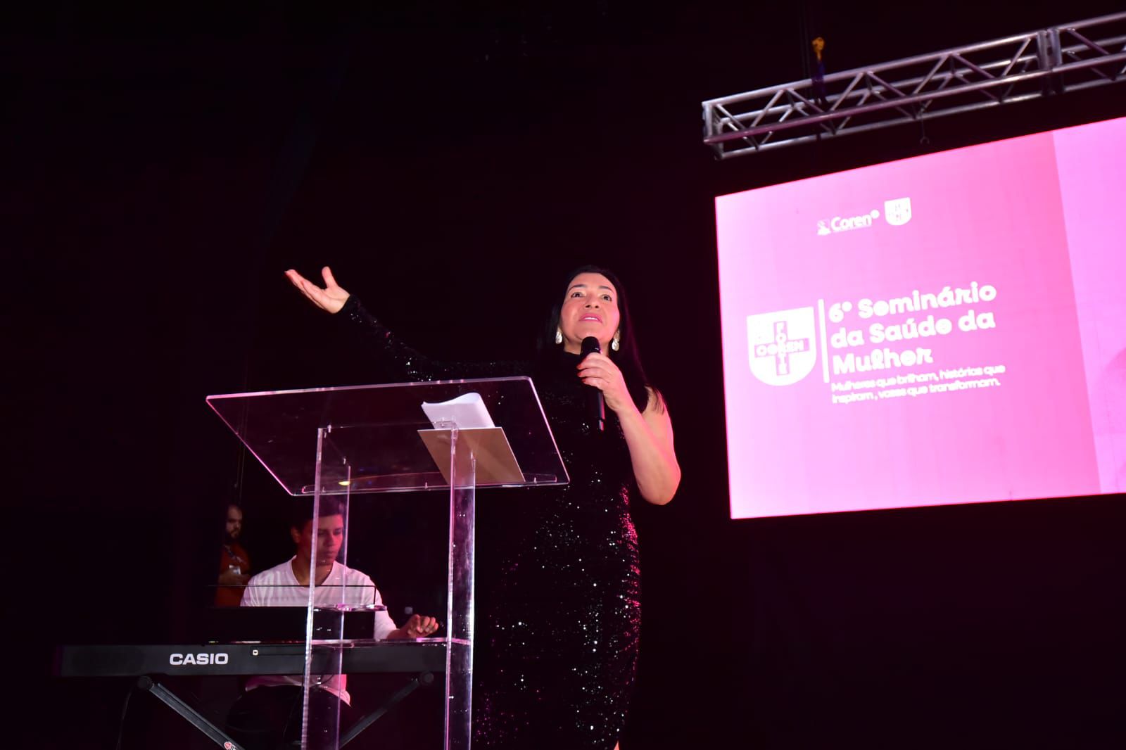 Tatiana Melo, representando o presidente do Cofen, Manoel Neri, celebrou a realização do evento no mês dedicado às mulheres. “É uma alegria estar aqui representando o Cofen, especialmente em um evento que valoriza a saúde da mulher em um mês tão simbólico. Essa iniciativa reforça o compromisso do Sistema Cofen/Conselhos Regionais com pautas fundamentais para a nossa profissão”, pontuou.