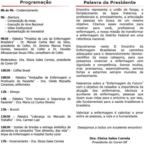 Confira a programação do II Encontro da Enfermagem Brasiliense