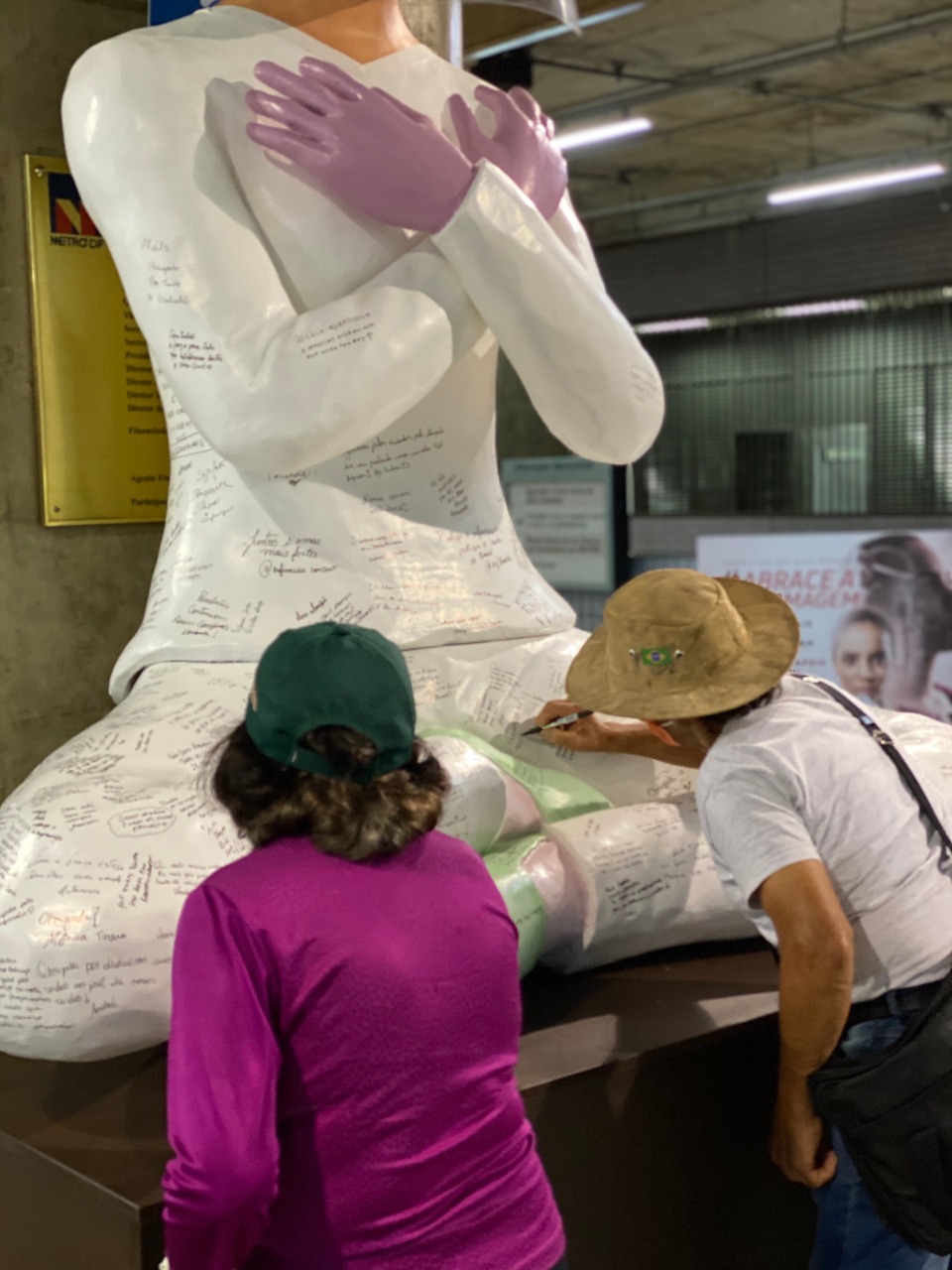 Obra faz parte da campanha #AbraceaEnfermagem e fica na Estação Central do Metrô de Brasília até 2 de dezembro.